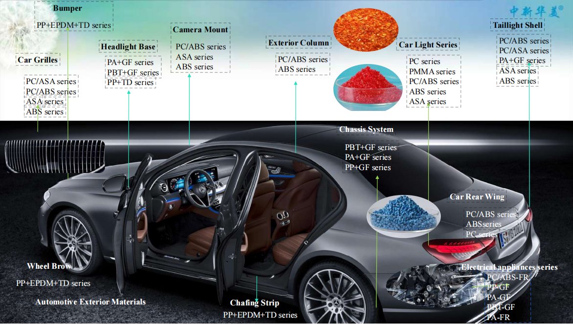 Applied to automotive interiors, electrical enclosures, home appliance components, medical devices, and outdoor air conditioner units.