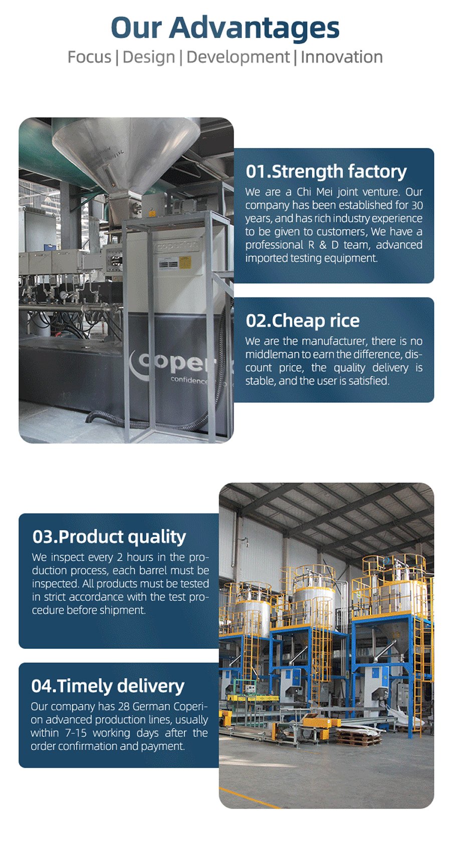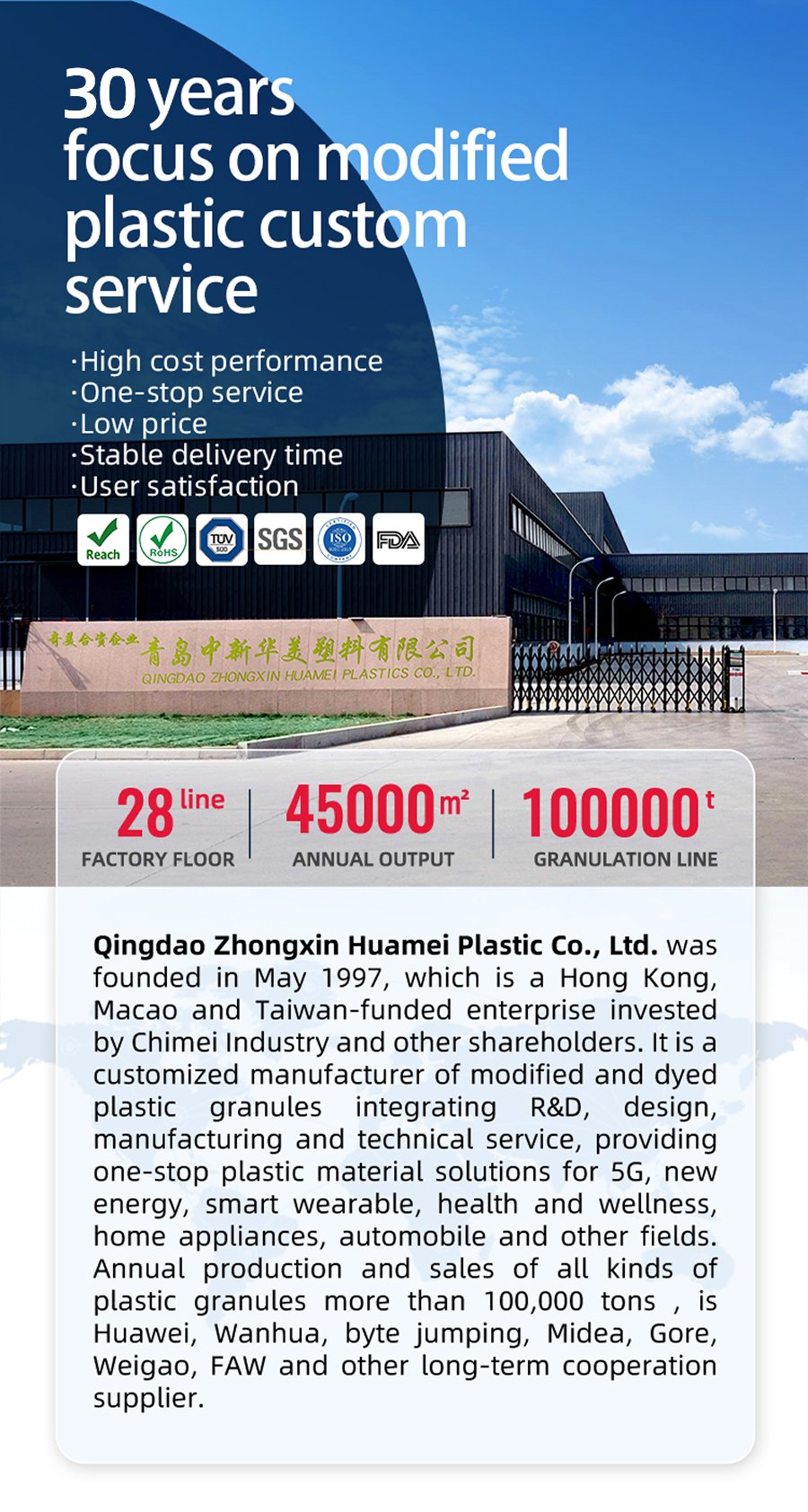 Qingdao Zhongxinhua Mei Plastic Co., Ltd. is a professional manufacturer of engineering plastic materials. You can order high-quality polyamide 6, paraformaldehyde, polycarbonate, polybutylene terephthalate and acrylonitrile butadiene styrene at favorable prices directly from our factory.