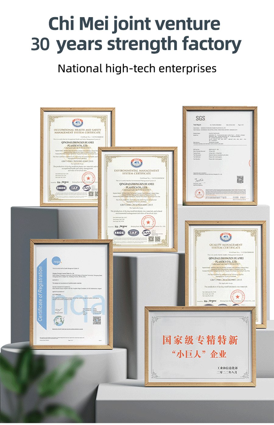 Qingdao Zhongxinhua Mei Plastic Co., Ltd. is a professional manufacturer of engineering plastic materials. You can order high-quality polyamide 6, paraformaldehyde, polycarbonate, polybutylene terephthalate and acrylonitrile butadiene styrene at favorable prices directly from our factory.